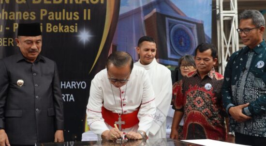 KOTABEKASI – KOMPAS RAKYAT Wakil Wali Kota Bekasi Abdul Harris Bobihoe hadiri acara pemberkatan Gereja Katolik Santo Yohanes Paulus II, Rawalumbu, Kota